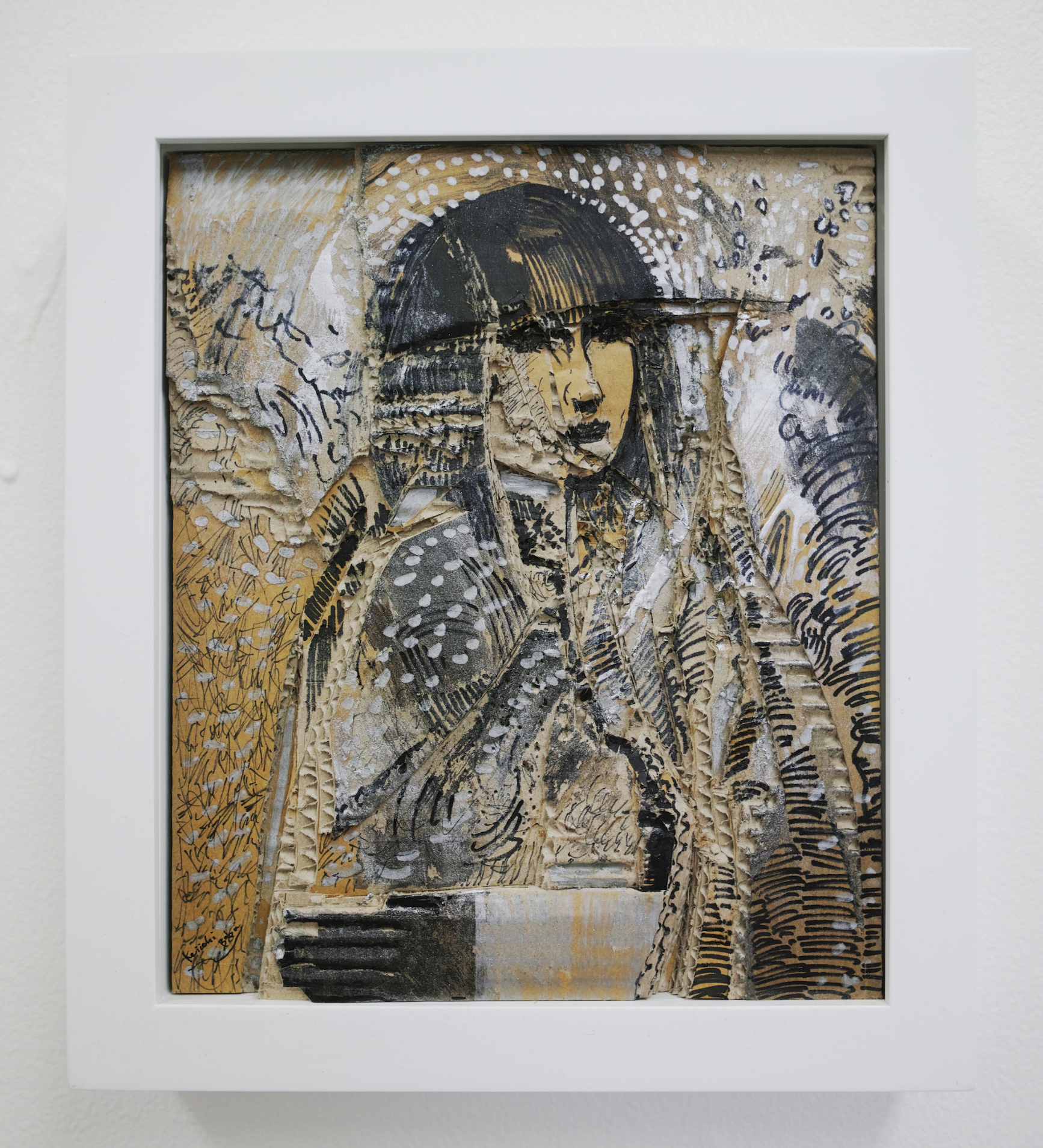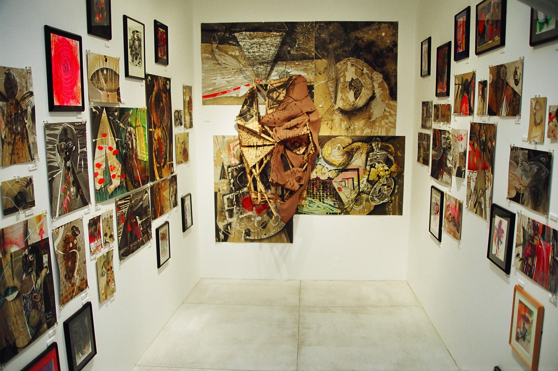 それからは、アルバイトをしながら作家活動を始める。最初の展覧会は、千駄木にある小さなアフリカ居酒屋の8畳くらいのスペース。知り合いからの情報や、紹介を通じて、徐々にギャラリーで実績を積んでいった。油彩、水彩、アクリル、ミクストメディア、ボール紙、さまざまなアプローチで独自技法を追求し、ダンボールの使用が定着し始める。