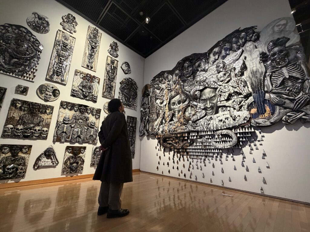 受賞作《死と再生のイニシエーション》の展示空間には連日、老若男女多くの来場客が訪れる。馬場さんは、自らの人生が凝縮されたナラティブ(物語)を、個別の作品の解説も交えながら丁寧に伝える。長時間滞在する人、リピーターも多い。中には4度訪れた人もいるという。