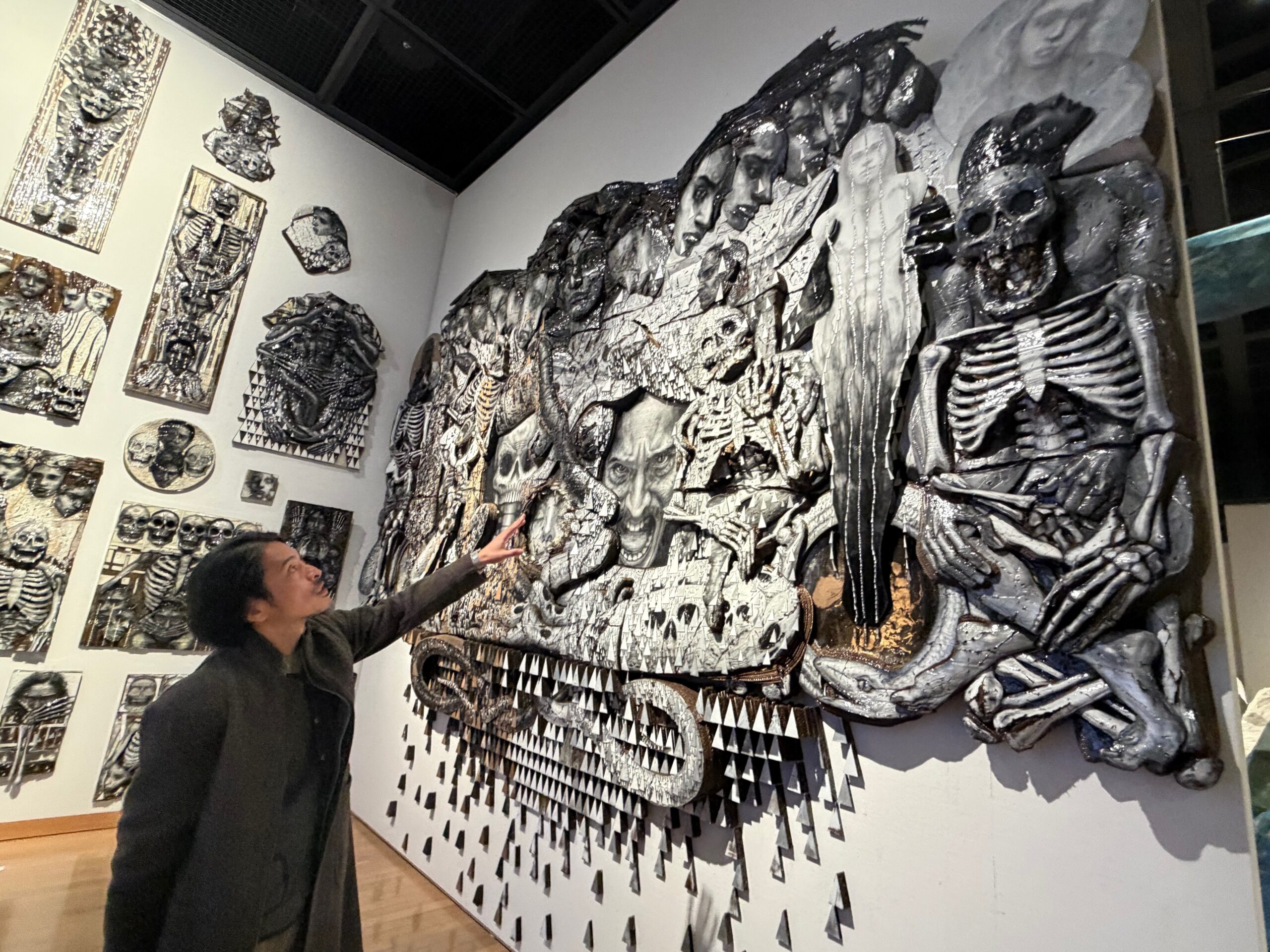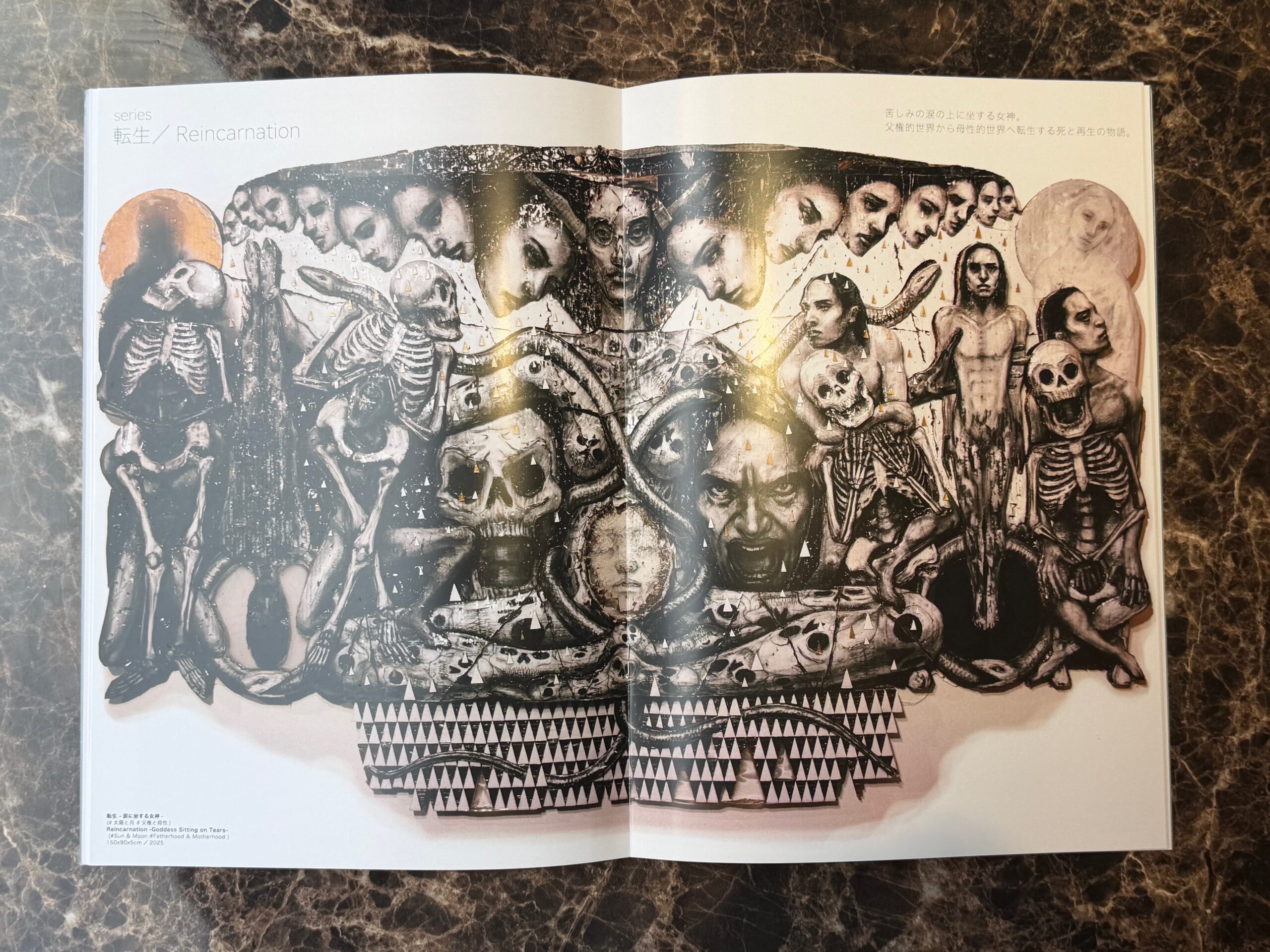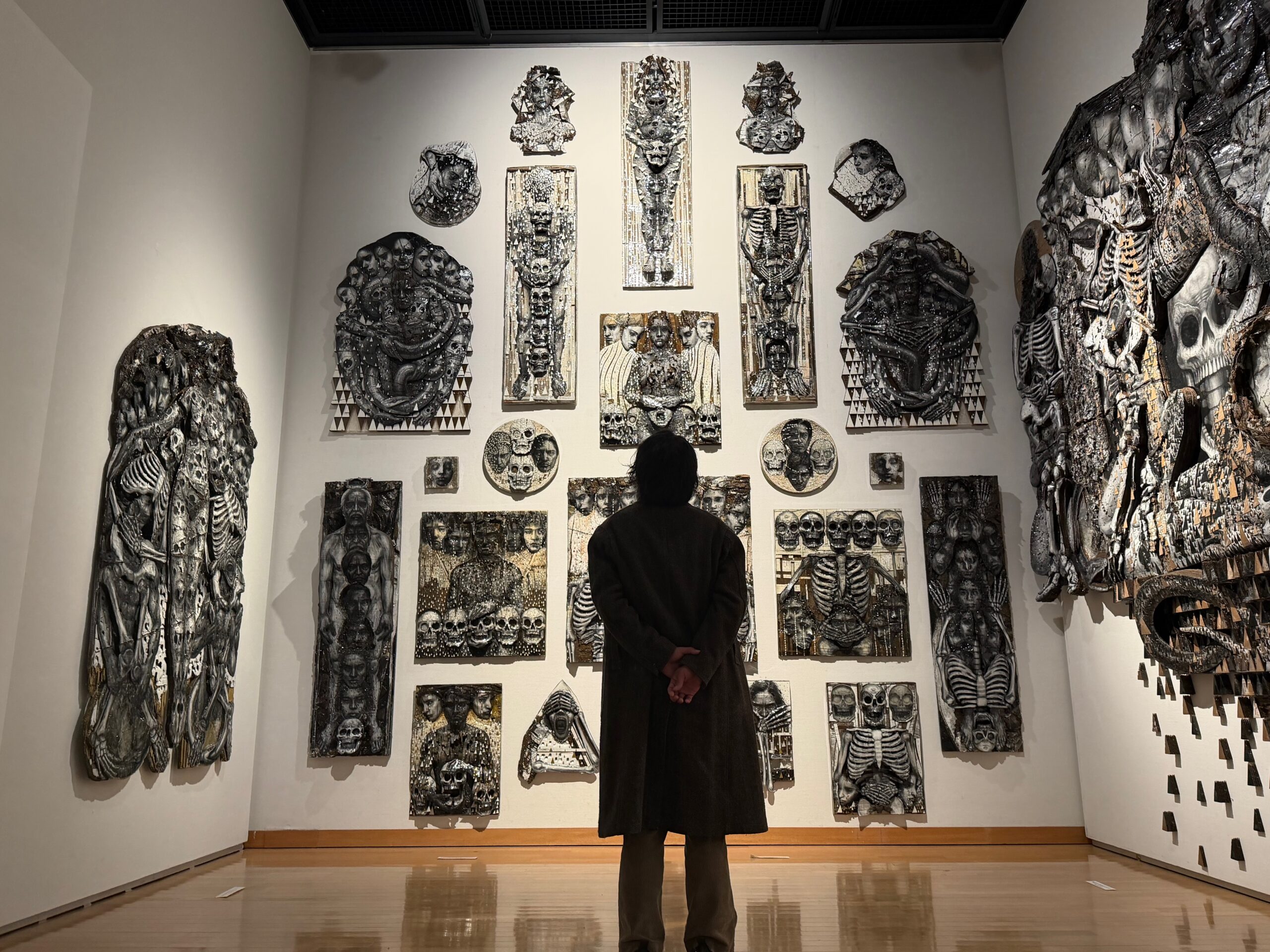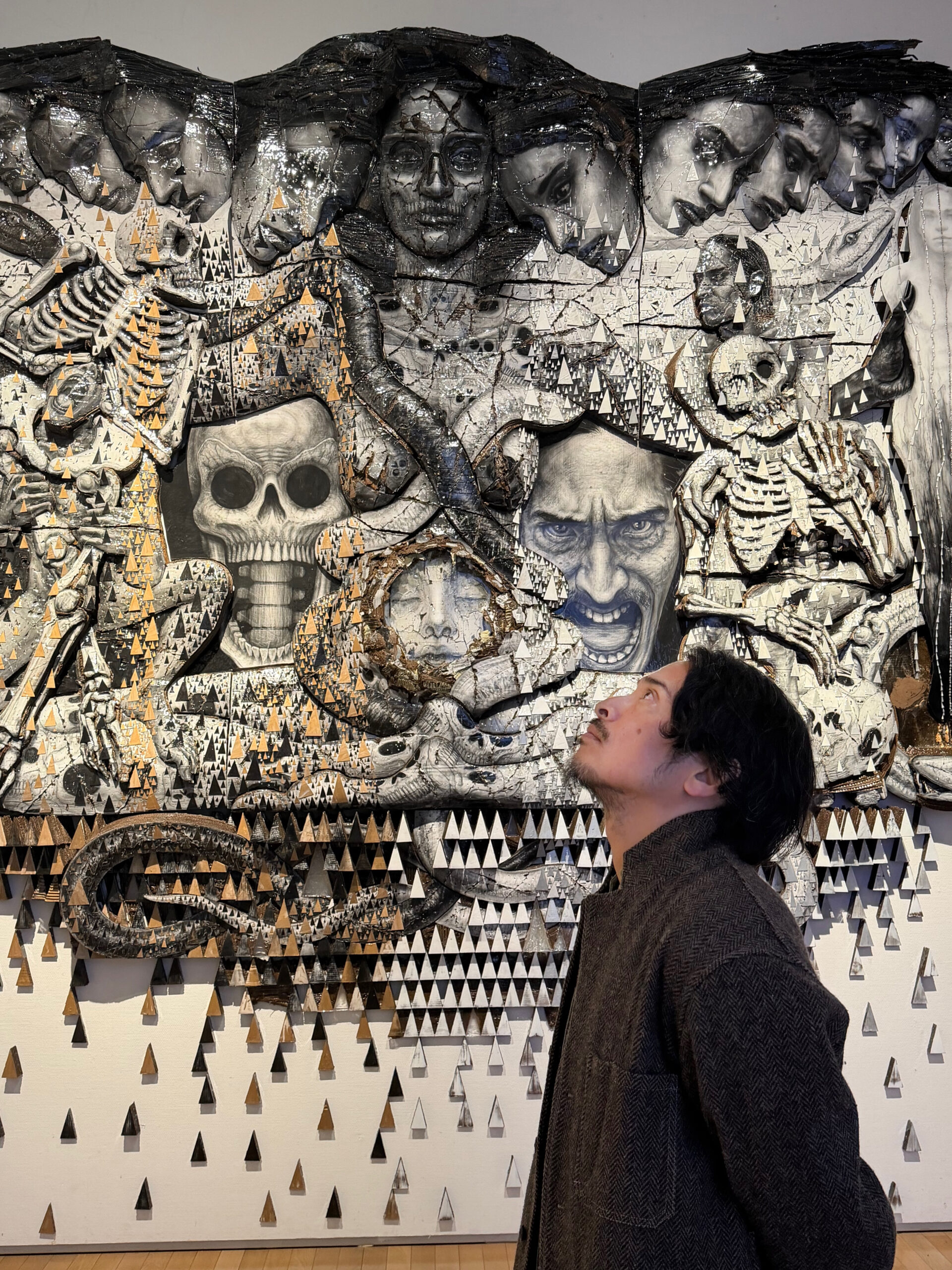 審査員の山下裕二氏は「最も強烈なインパクトのある作品」と評し、3月中旬に発表された来館者投票では最高の得票数を集め、オーディエンス賞を受賞した。作家の人生が凝縮された作品に、圧倒される来場者は後を絶たない。絶大な強度を持つ世界観は、どのように生み出されたのか。藝大受験、インド放浪、母の介護、鬱、パートナーとの歩み、気鋭の芸術家の半生をたどる、ロングインタビューをお届けする。