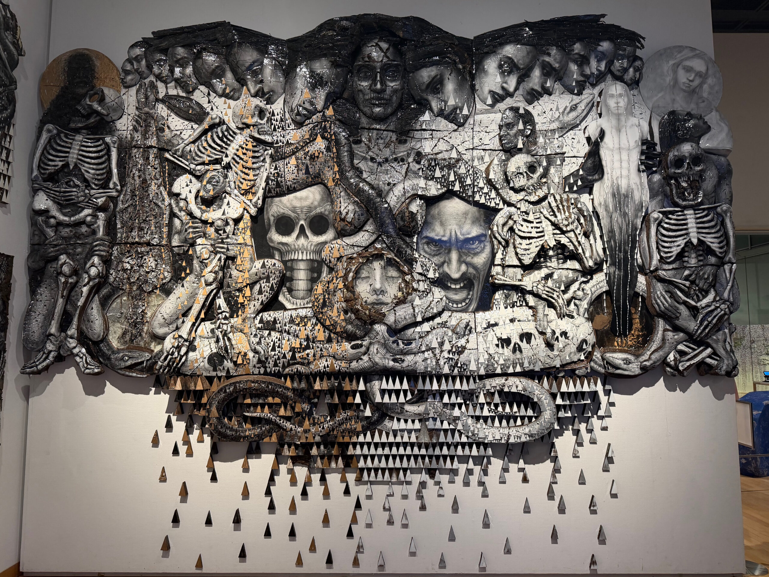 1月末に発表された「第29回岡本太郎現代芸術賞(以下、TARO賞)」で岡本敏子賞を受賞した馬場敬一氏の《死と再生のイニシエーション》に寄せられる言葉だ。苦悶し、叫ぶ男。執拗に男を死へ誘う髑髏。憂いを帯びたまなざしの女神。三者が一体となり繰り広げられる神話的世界。そこには見る者の足を止め、強く訴えかける展示空間が広がっている。