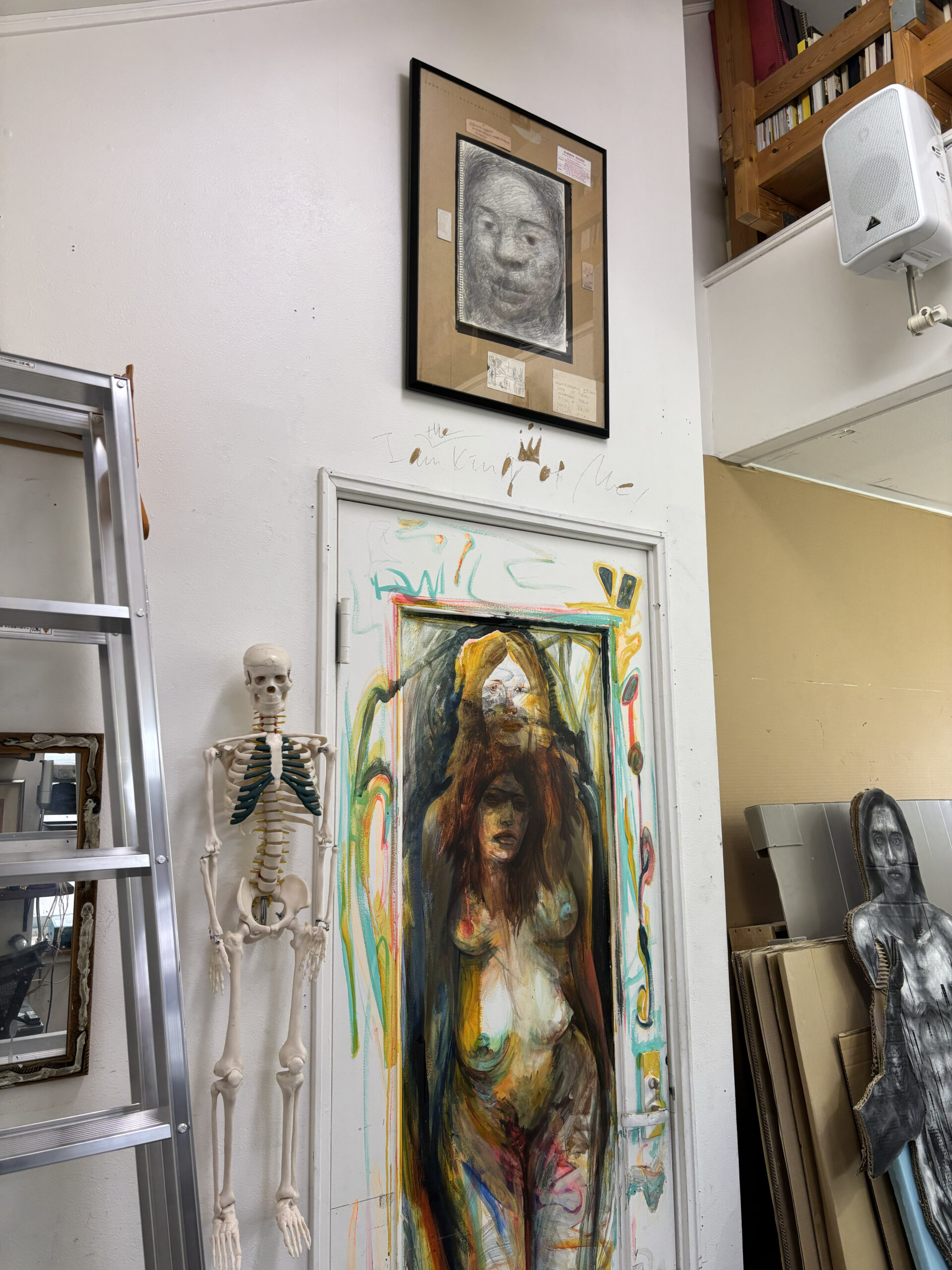 作家になる決意をした20歳の自画像は、馬場さんの原点となった。アトリエに額装して飾られており、当時生まれた円環の波を今に伝えている。