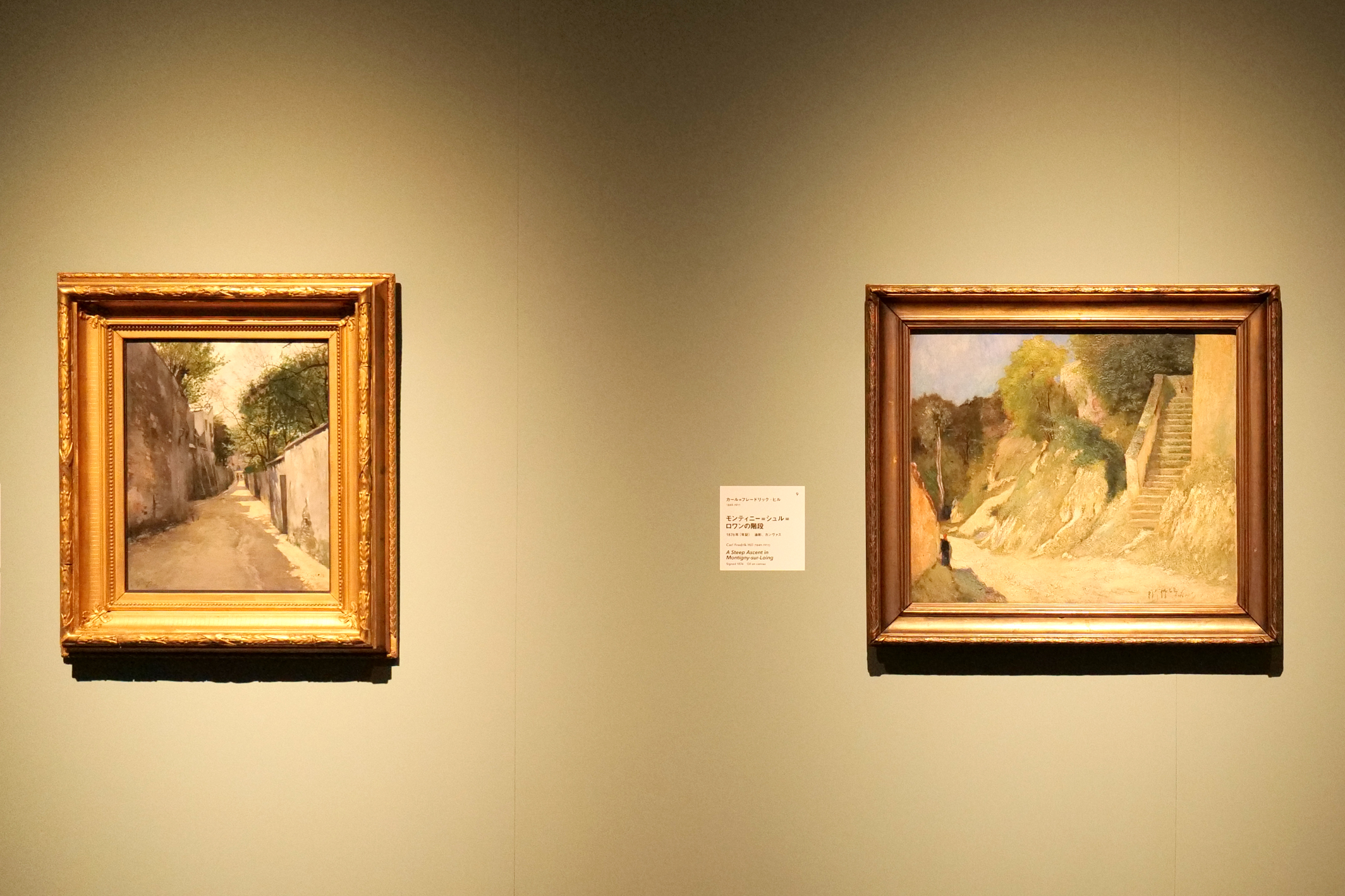 路地の陰影、山道や階段の勾配。光や風を捉えんとする作家たちの視点。ふ、と引き込まれるような気の流れを感じさせる。道、階段はどこへ続くのか。気の通りと光のうつろい。中央に主題を立てず抜けを生みだし、視線を画面の奥に誘う構図が実に巧みだ。これらの絵を描いたヒューゴ・ビリエル、カール=フレードリック・ヒルも自国で絵を学んだのちにフランスへ向かった。