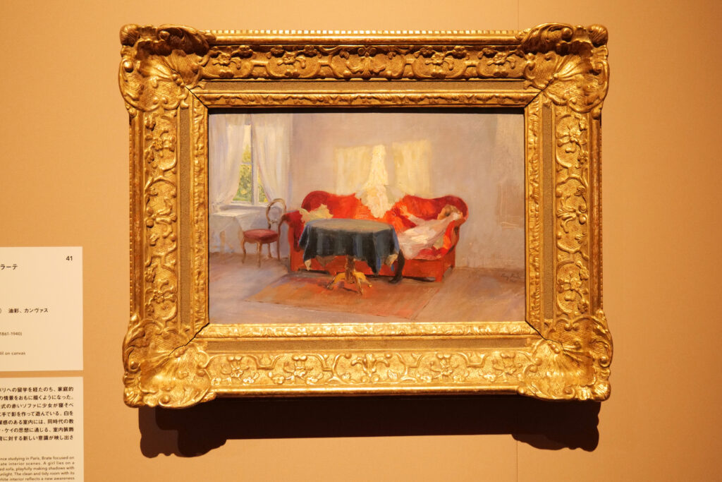 本展では、スウェーデン国立美術館も推進するスロールッキングという鑑賞法が音声ガイド(有料)で提案されている。「観る」喜びを知っているから、私たちは美術館に向かう。しかし、一つの作品を前に、どれだけ没入できるかは人によって異なるし、没入に慣れていない人もいる。音声ガイドから流れる絵画への問いかけが、作品世界に心ゆくまで浸る誘導をしてくれる。