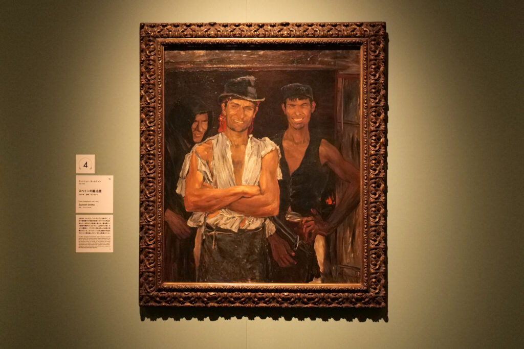楚々とした静けさを感じさせる作品が多く展示される中、こうした生命力あふれた作品も目にすることができる。白い歯を見せて笑う、スペインのたくましい男たち。当時を生きる人々の活気がそのまま伝わる、瞬間を収めたような画面だ。