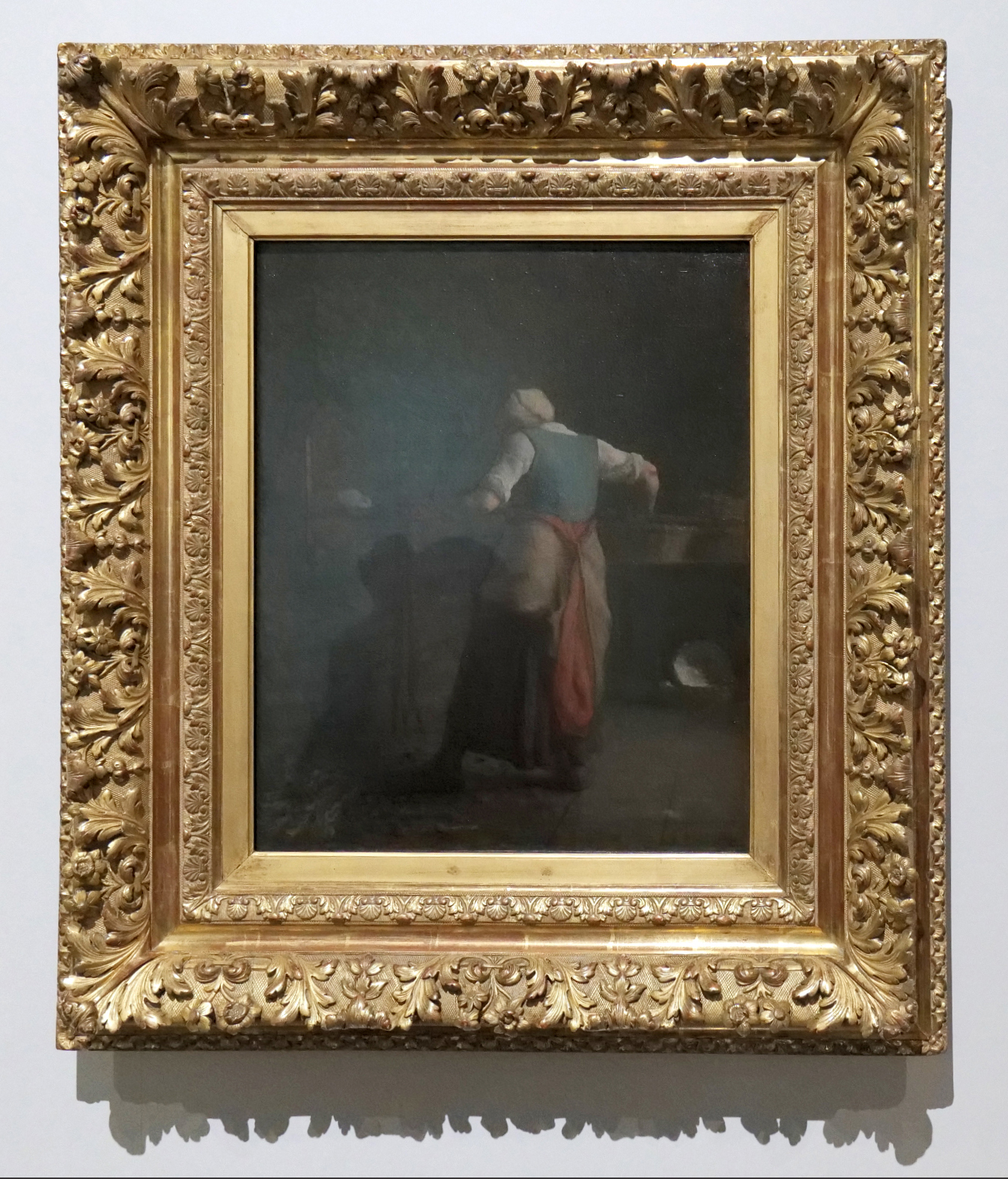 女性が釜戸にパン生地を入れて焼くところを捉えている。柔らかな光の当たる背中は頼もしく、人物の体躯を静かでありながら荘厳な風合いでとらえている。