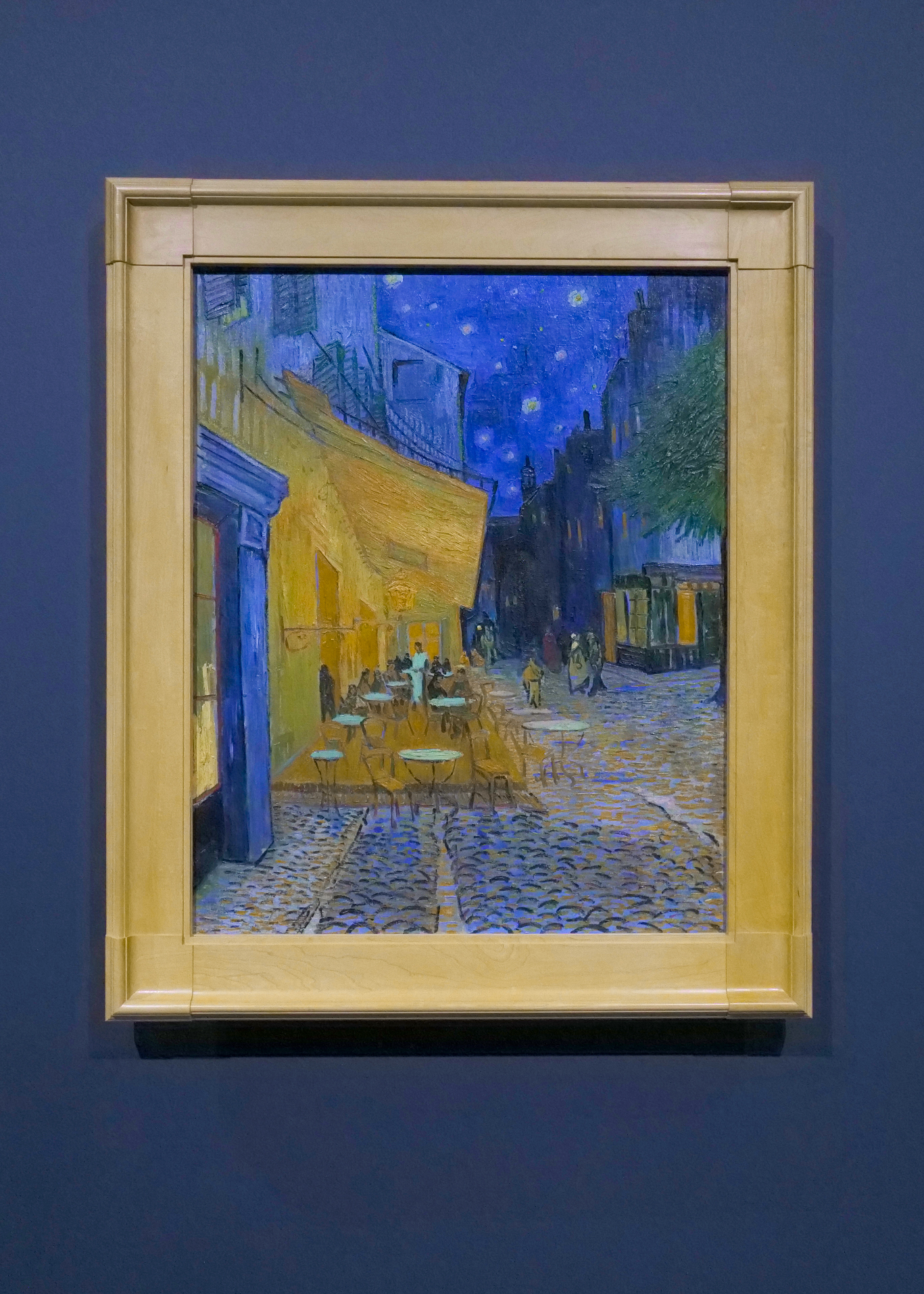 ゴッホの代表作として名高い《夜のカフェテラス》。夜に光るカフェの黄色に惹きつけられる。青い夜。星。石造りの道を歩く人々、街路樹。向かいから発せられる煌々とした光。どこか浮世離れした光だ。ゴッホは、カフェにたむろする人々、ウェイター、その空間に狂いを見出している。
